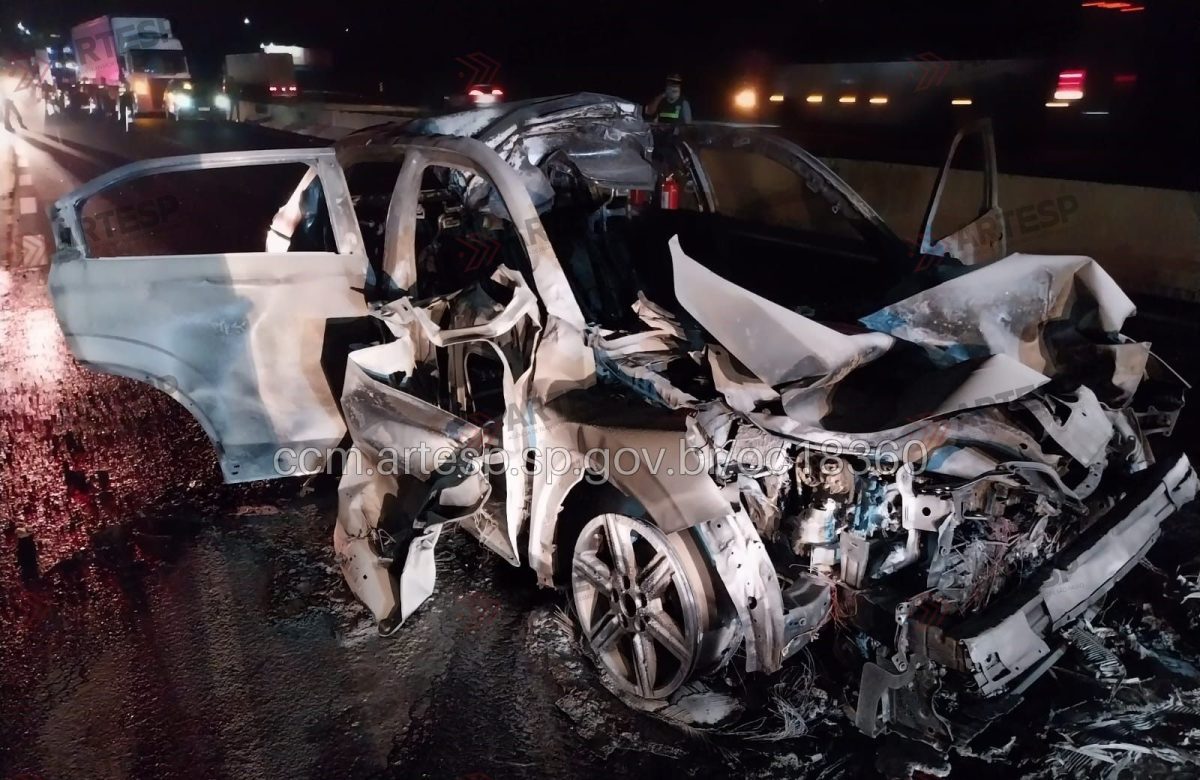 O veículo bateu na traseira de uma carreta e, em seguida, pegou fogo. No carro estava só o motorista, que conseguiu sair sem ferimentos. Na carreta, onde também estava apenas o condutor, ninguém se feriu e o motorista conseguiu parar no acostamento.