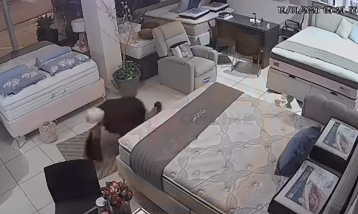 Câmeras de segurança registraram a ação. O homem entrou na loja por volta de 05h30 e, carregando um saco preto, colocou diversos objetos dentro. Depois saiu engatinhando do local, evitando ser identificado pelas câmeras de monitoramento.